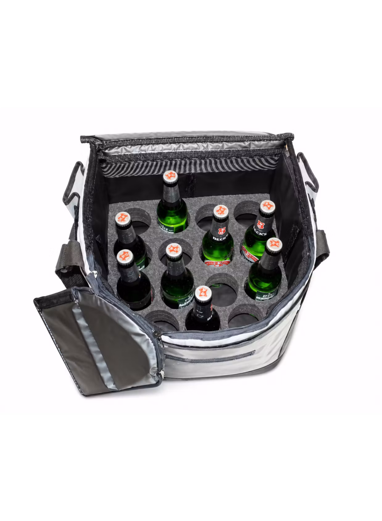 Den rymmer upp till 40 liter och är särskilt anpassad för burkar och flaskor, perfekt för exempelvis kaffe, läsk eller andra drycker i farten. Med ett stabilt bärsystem och genomtänkt design får du både komfort och kontroll under hela arbetspasset.