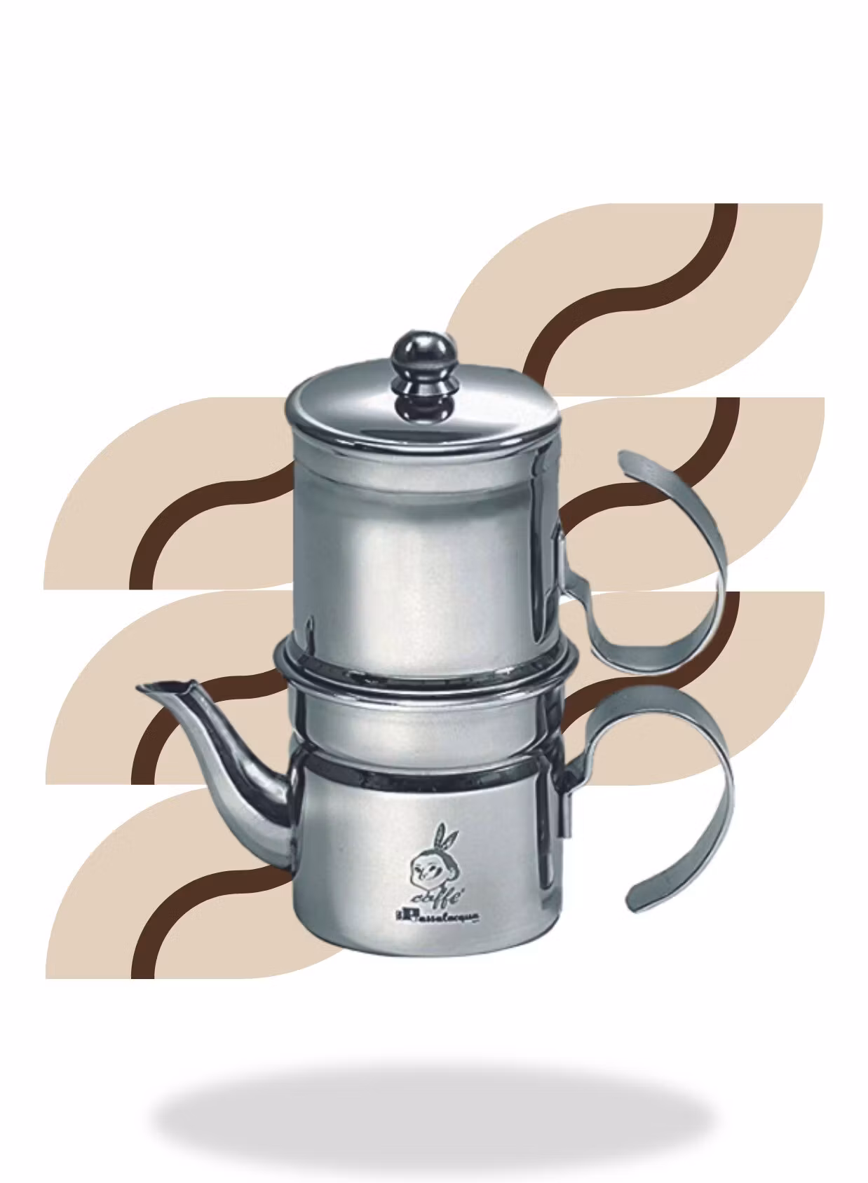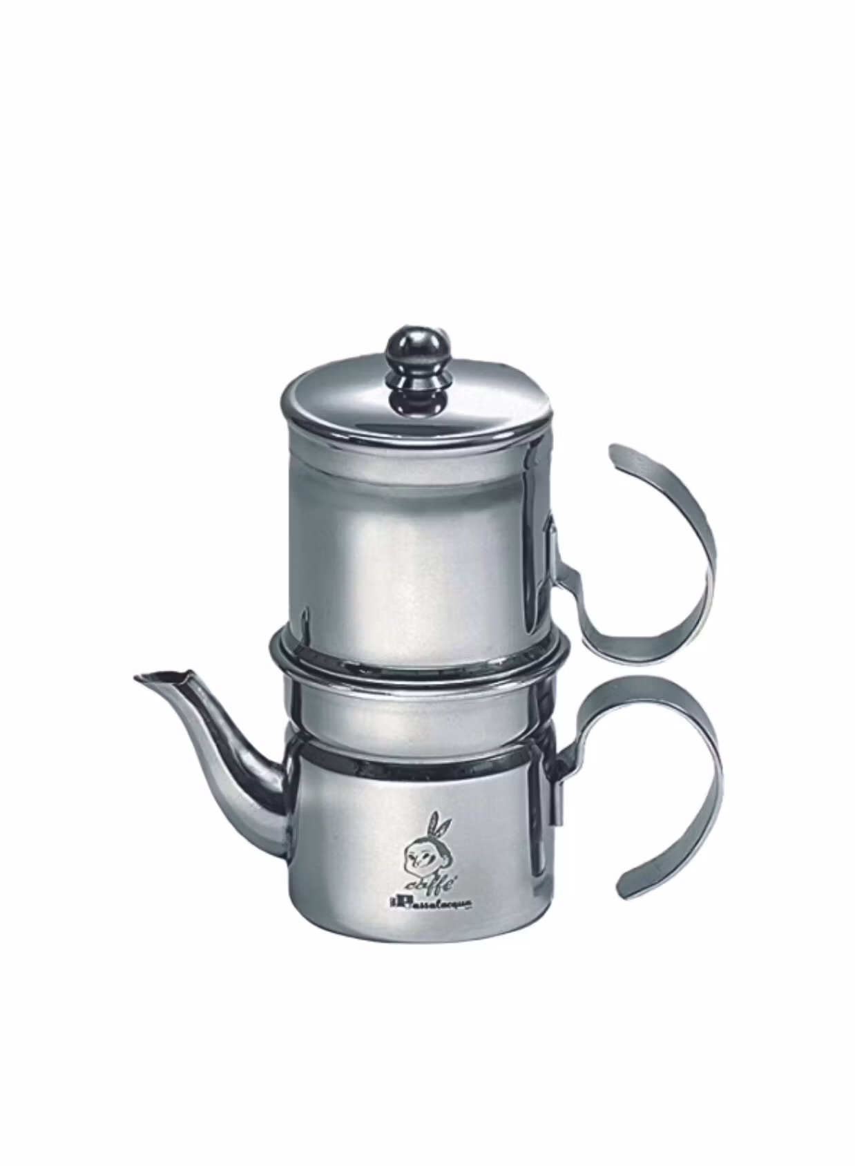 En snygg kaffebryggare från Passalacqua, denna klassiska Coccumella-bryggaren skiljer sig från moka-bryggaren på så sätt att kaffebryggaren inte använder sig av trycket från vattenångan för att tvinga vattnet upp genom kaffet utan använder sig istället av gravitationen.
