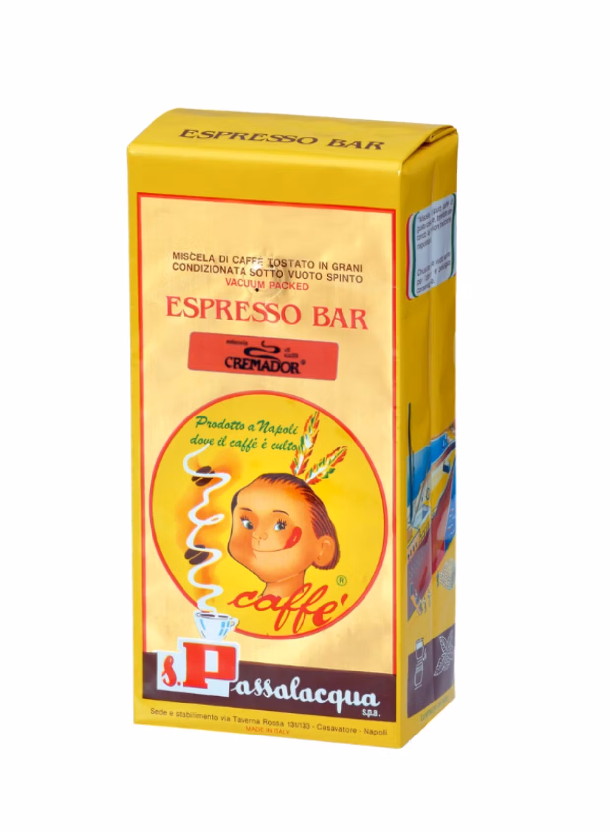 Detta är ett av de mindre italiensk kafferosterierna, baserad i Neapel. Passalacqua är ett av Napolis mest ikoniska rosterier och har sedan 1948 finslipat konsten att rosta mörkrostade kaffebönor med precision och passion. Passalacqua är känt för sitt design och den klassiska indianen på förpackningen. Man sätter i rosteriet stor vikt vid att ha bra bladningar och rostningar, med höga krav på de kaffebönor som används, så som i deras Passalacqua Cremador kaffebönor. Passalacqua lägger stor vikt vid hantverk och kvalitet – det märks i varje kopp av deras kaffebönor.
