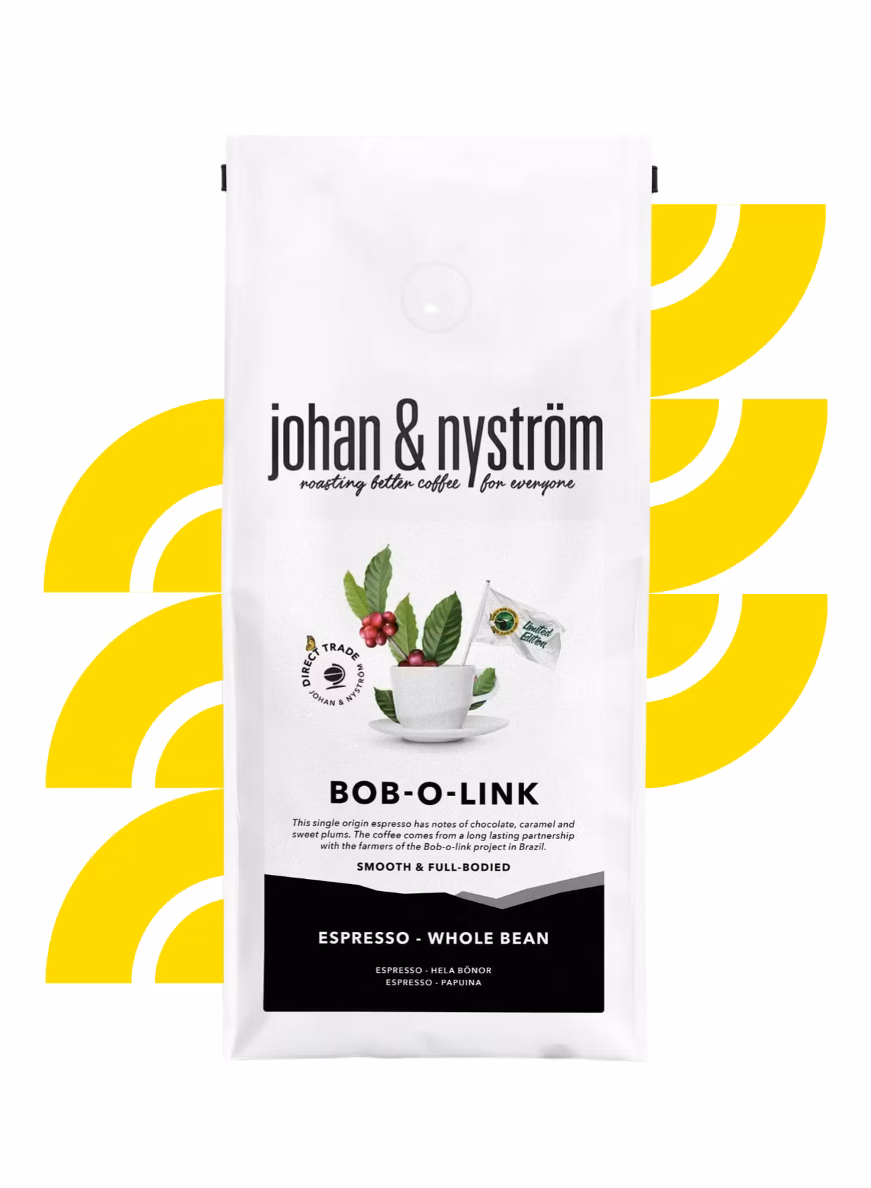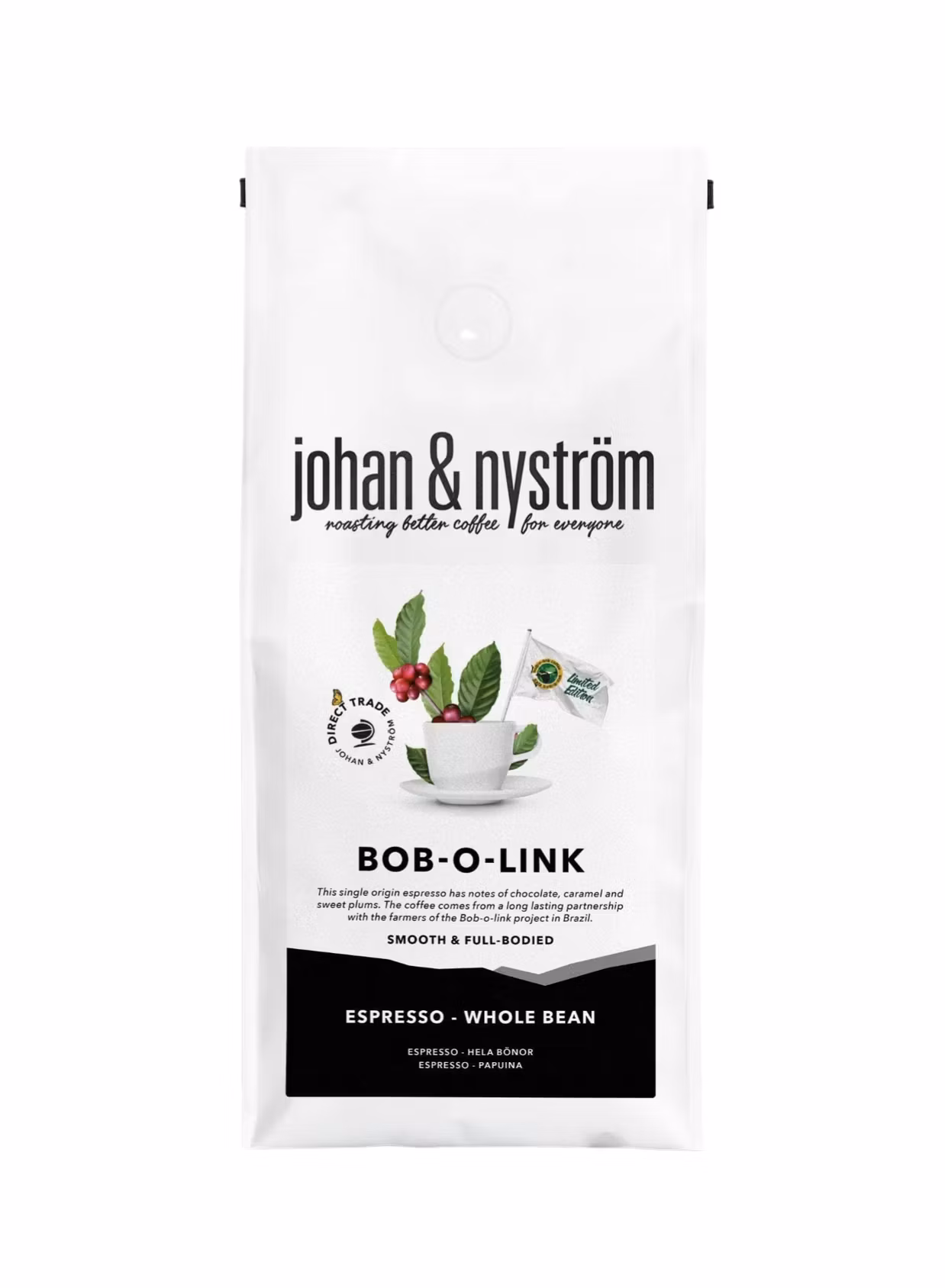Johan & Nyström Bob-o-Link Kaffebönor – Brasiliansk mellanrostad specialkaffe med choklad & plommon